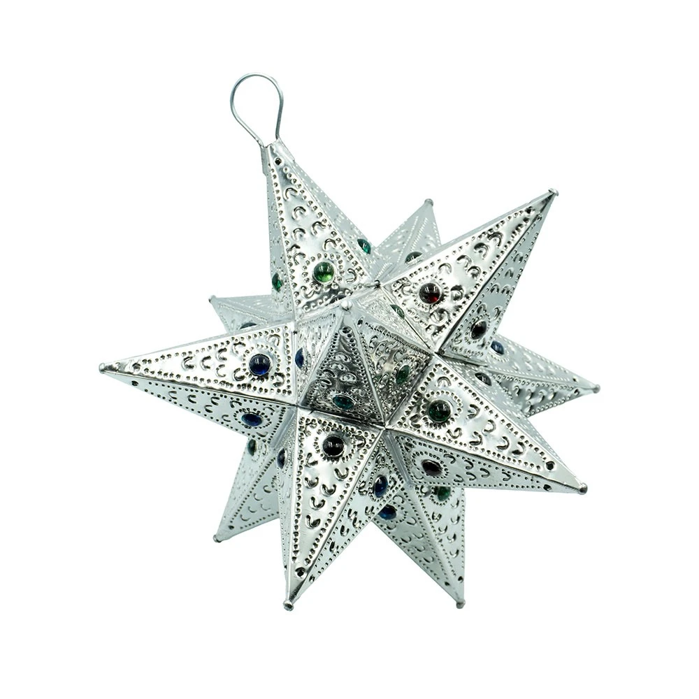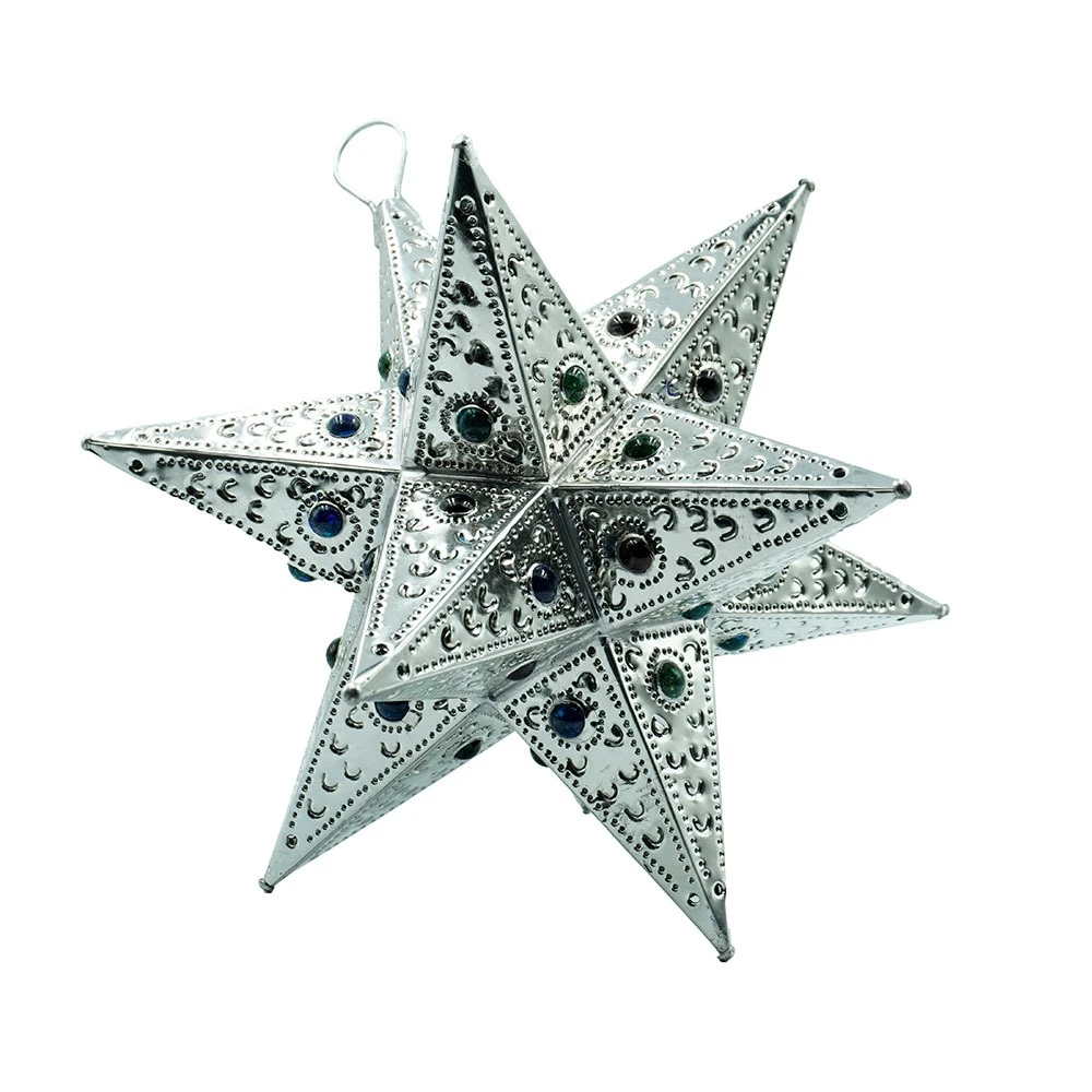 Artesanía en lámina como estrellas, jaulas de diferentes tamaños.
